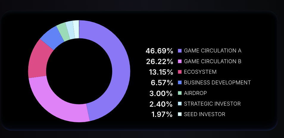 | GAME CIRCULATION B | 26.22% | 파트너 게임, 서비스 연계 인센티브, 게임 간 전환 토큰용 |