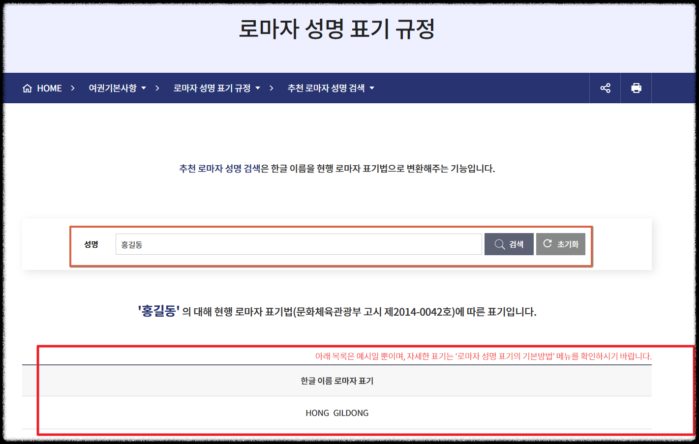 홍길동의 예시 ) HONG GILDONG