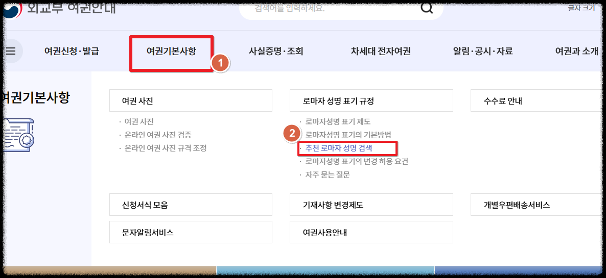 여권기본사항 -> 추천 로마자 성명 검색으로 이동