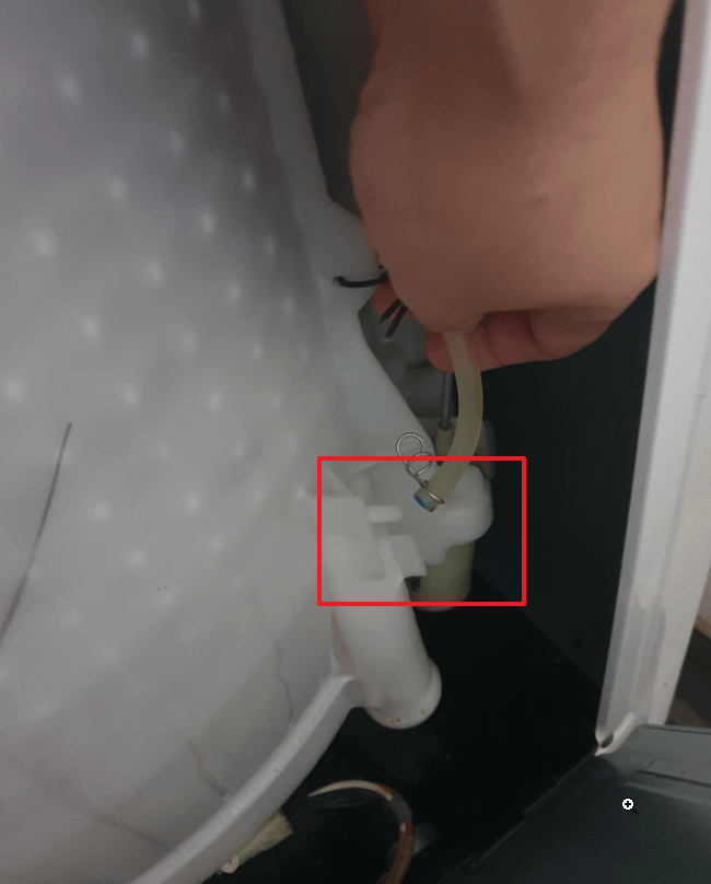 열자마자 보니 호스가 빠져있었습니다. 이 부분을 다시 연결하여 줍니다.