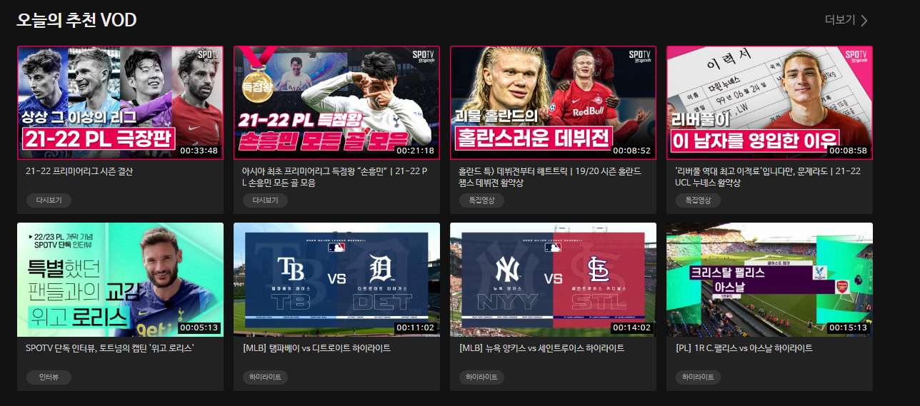 스포츠 전문 OTT 사이트로 각종 스포츠를 라이브로 볼수 있습니다. 해외에서 활약하는 해외파 선수들의 거의 모든경기를 볼수 있습니다. SPOTV NOW는 스마트폰과, 컴퓨터, 스마트TV 에서 이용할수 있는 플랫폼입니다.