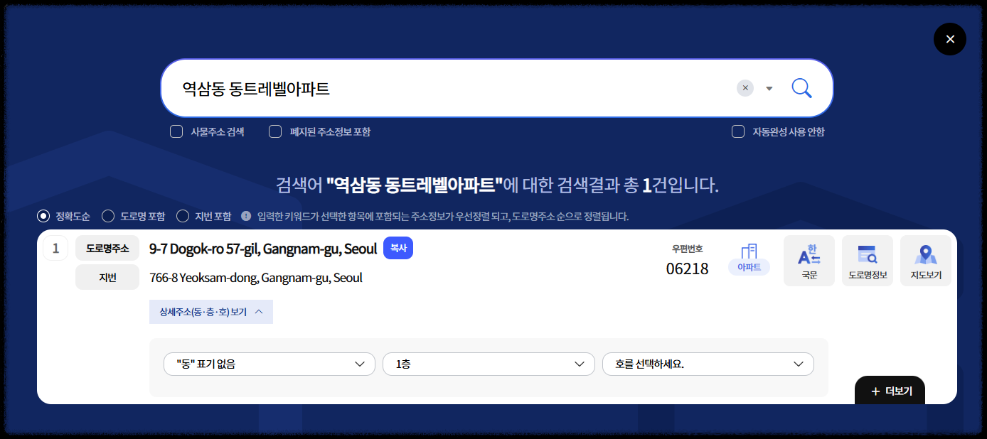 - 정확한 상세주소 변환이 필요하다면 👉 행정안전부 도로명주소 포털