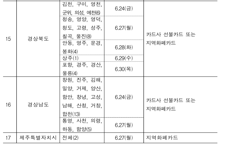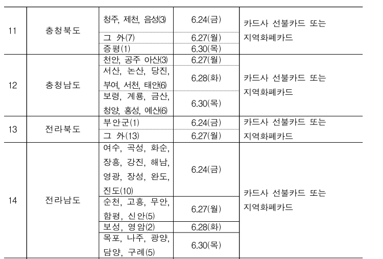 이번 지원금은 현금으로 주는것이아니라 선불카드나, 지역화페 카드등으로 지급됩니다.