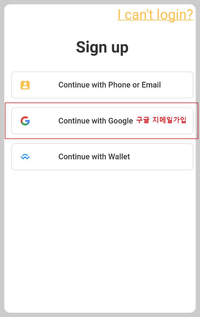 지메일로 가입해보겠습니다. 이외에도 휴대폰 번호와 지메일외 다른 메일로도 가입가능합니다.