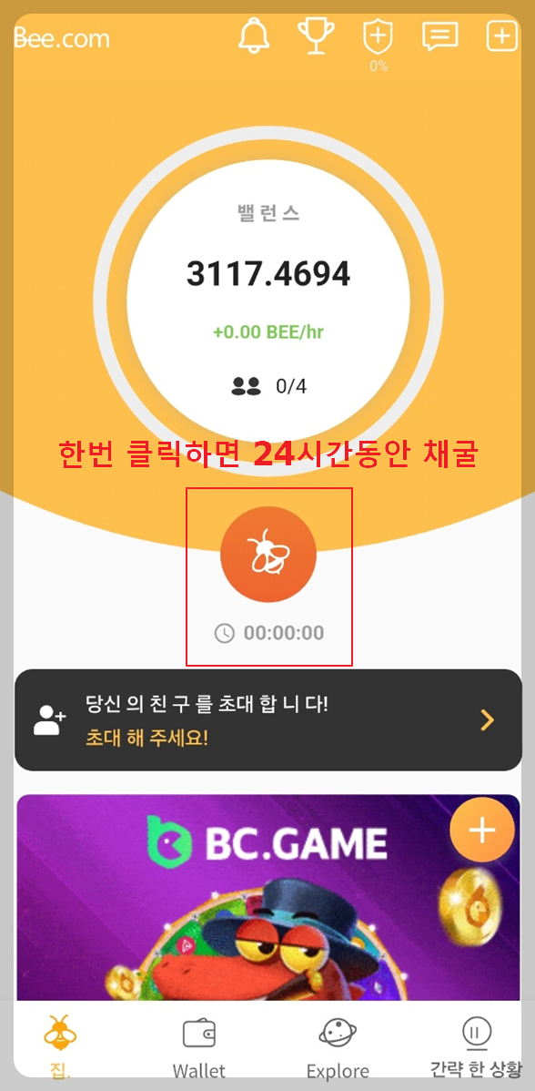 ✅ 하루에 한번씩 꿀벌 모양 아이콘 클릭