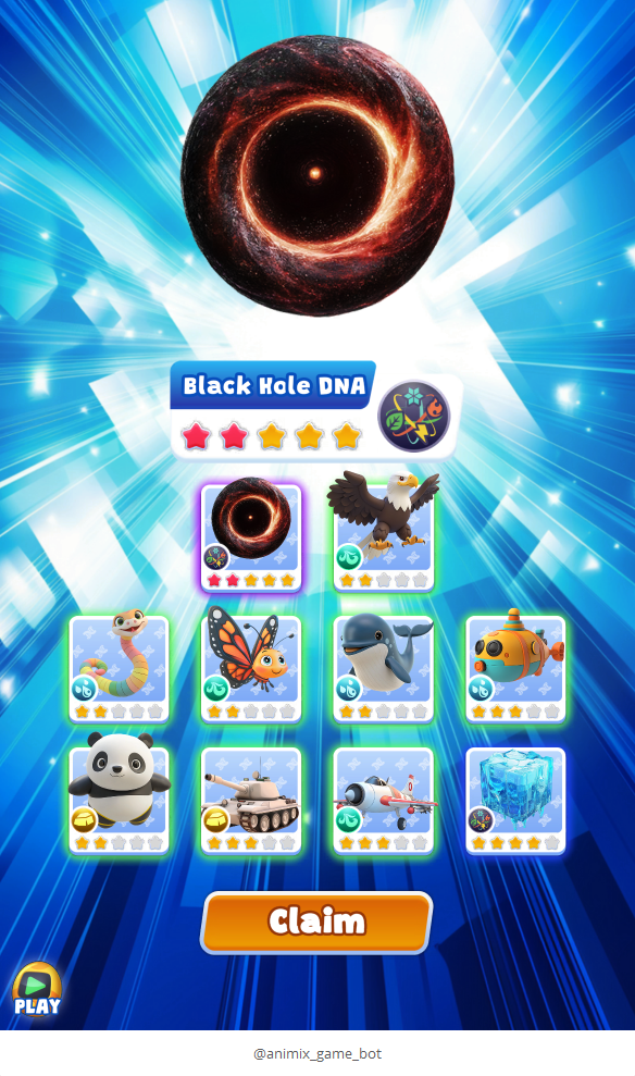 Gain new DNA를 클릭하면 뽑기를 진행할수 있습니다.10회연속뽑기를 한 결과물입니다. 7성짜리 블랙홀 DNA를 획득한 모습입니다.