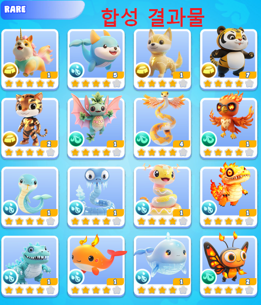 2성짜리 강아지와 2성짜리 돌고래를 합성했더니 4성짜리 멍고래가 탄생하기도 하였습니다.