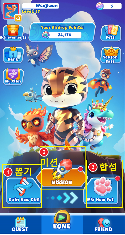 5성이상의 펫이 들어가는 미션부터 뽑기권을 보상으로 주기 때문에 5성이상의 펫을 보유하는것이 중요하다 말할수 있겠습니다.