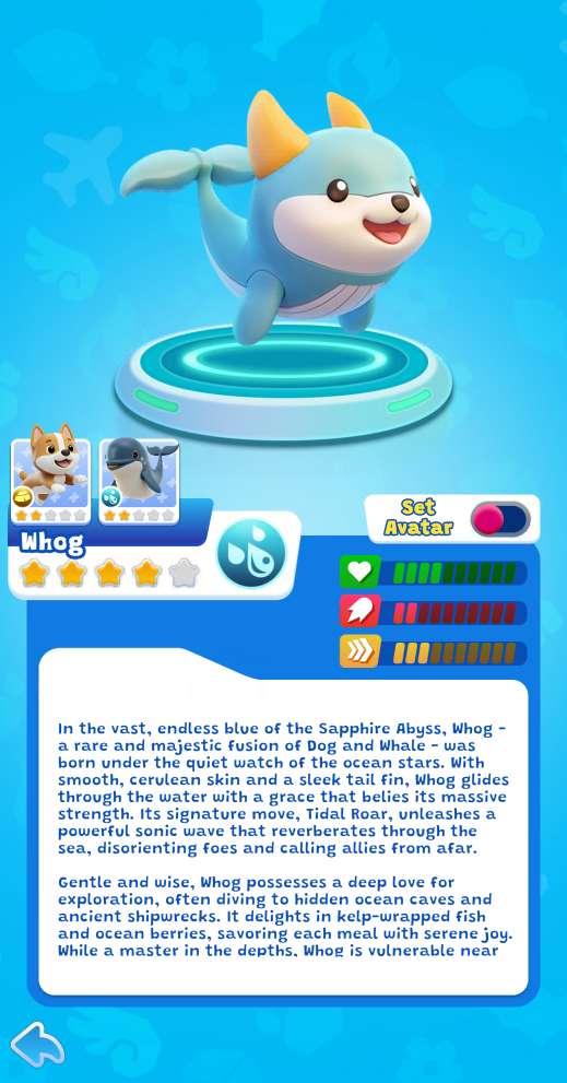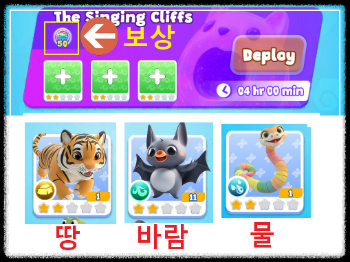 내가 가진 펫 3마리를 출전시켜서 미션을 진행할수 있습니다. 펫마다 속성이 있습니다.