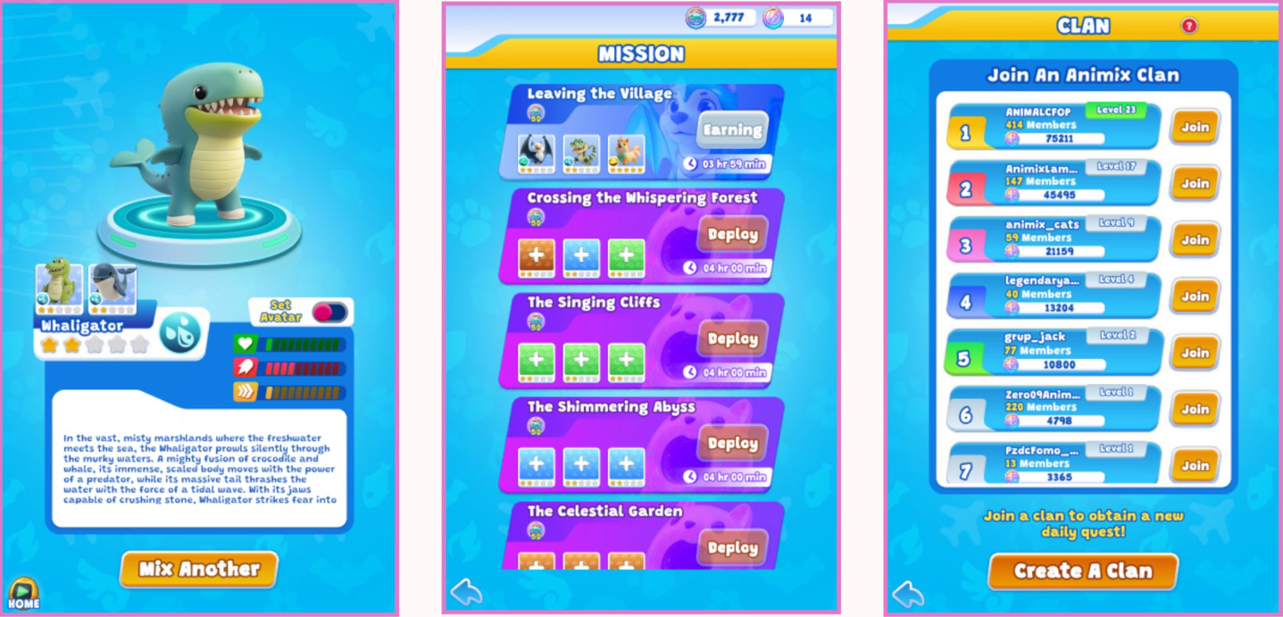 게임을 하다보면 뽑기로 많은 펫을 얻을수 있으며 2마리의 펫을 조합하여야 미션에 투입가능한 펫이 완성됩니다. 어떻게 조합하느냐에 따라 전혀 다른 펫이 탄생하기때문에 조합하는 재미가 솔솔합니다.