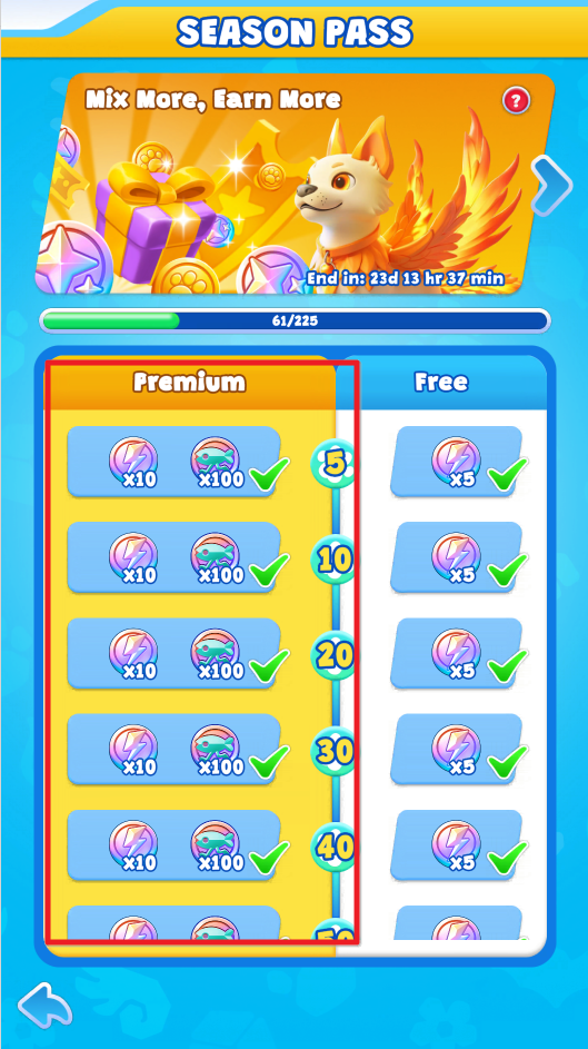 과금을 하지 않아도 FREE 영역의 보상을 받을수 있습니다. 시즌패스권를 구매하면 조건을 충족할때 마다 premium에 해당하는 더많은 보상을 받을수 있습니다.