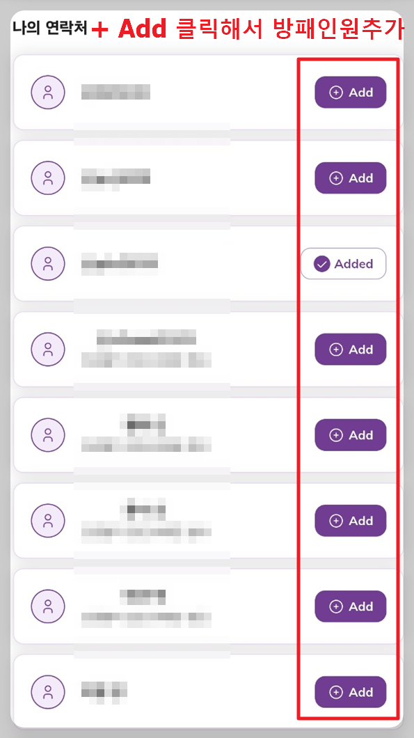 ✔ Added 로 표시된 사람은 이미 방패인원으로 되있는경우입니다.