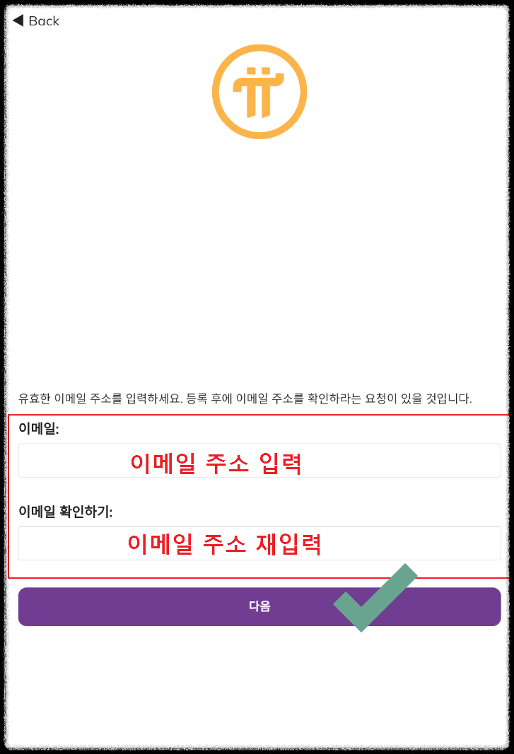 🟩 이메일 주소를 입력해 준후 확인차 똑같은 이메일 주소를 한번더 입력해 줍니다.