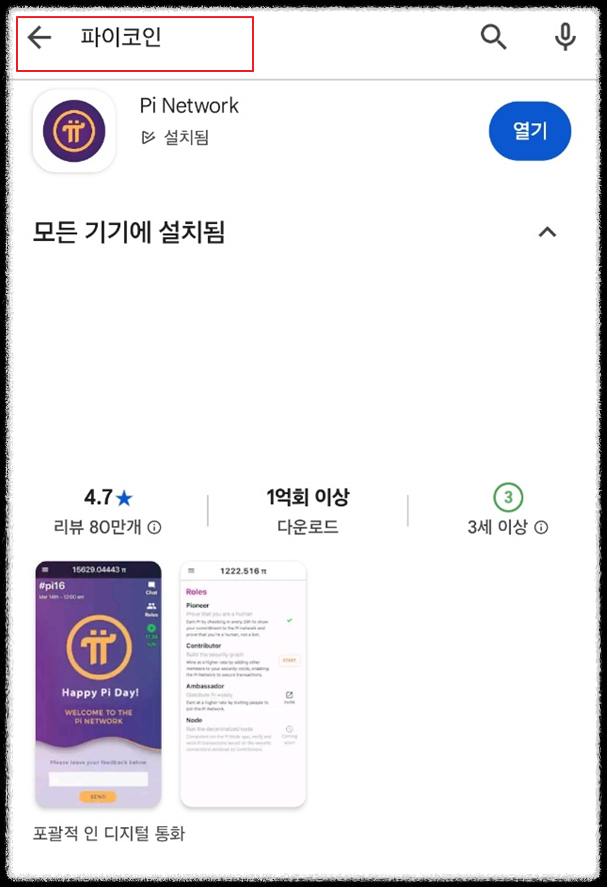 다운로드 수 1억회 이상을 기록하고 있는 Pi Network를 설치하면 됩니다.