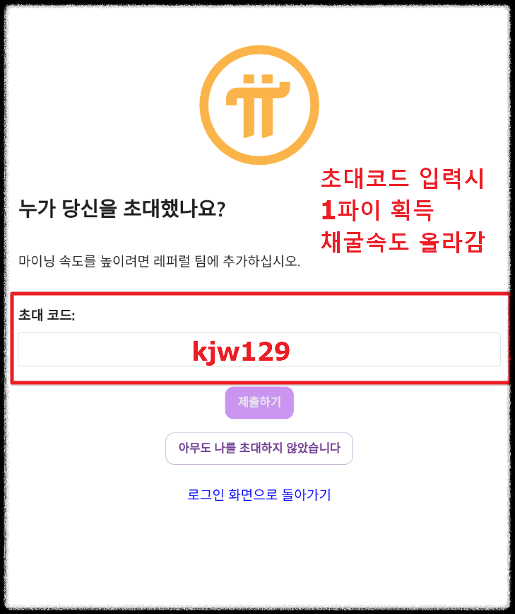 🟩 초대코드 입력시 채굴속도가 25% 올라가며 1파이코인을 얻을수 있습니다.