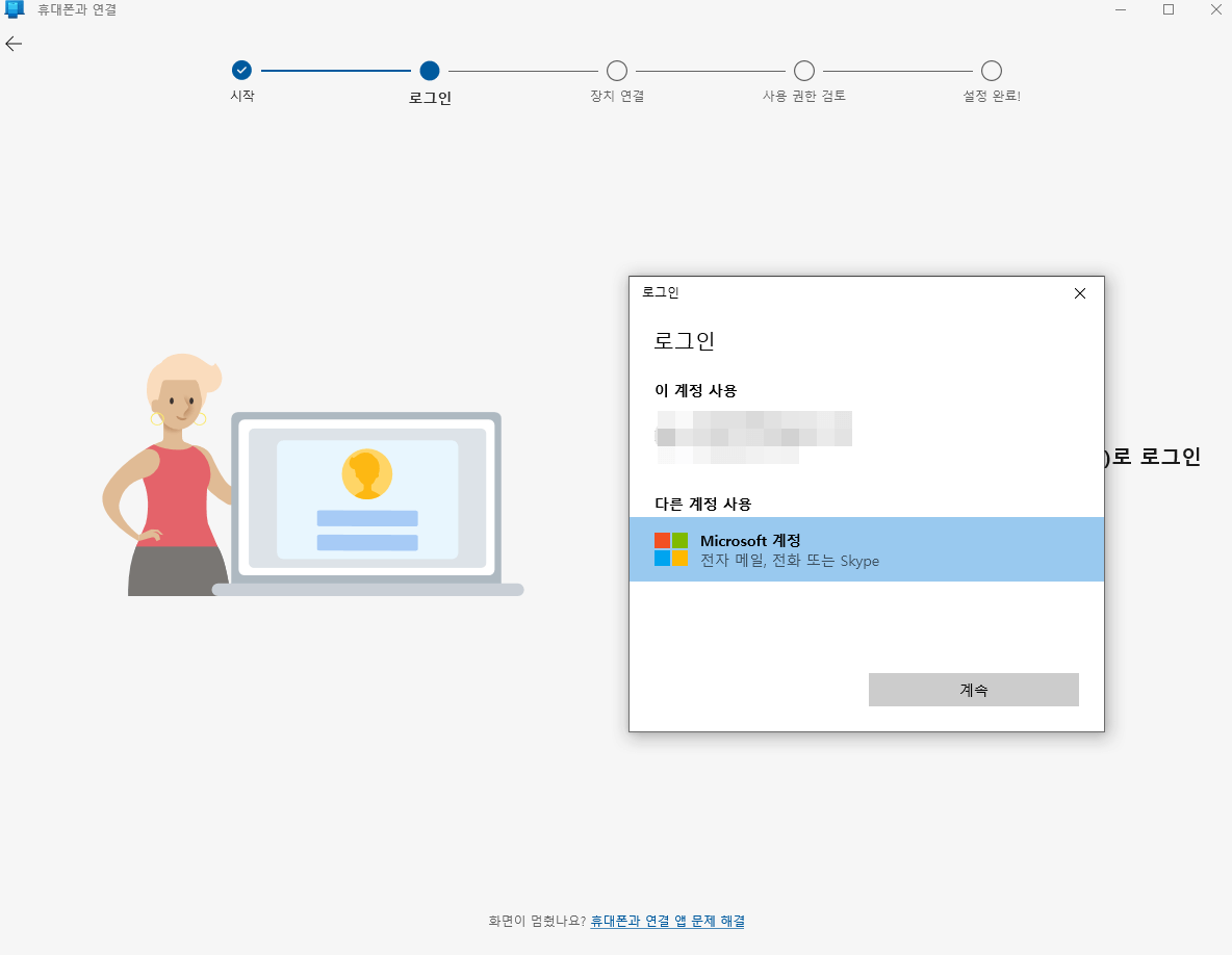 마이크로 소프트 계정이 아까 만들어준 계정과 동일하게 로그인되어 있어야 합니다.