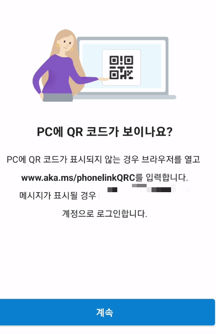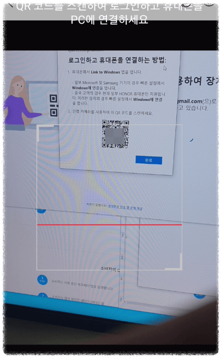 그후 컴퓨터에 QR 코드 화면이 뜨게 됩니다.
