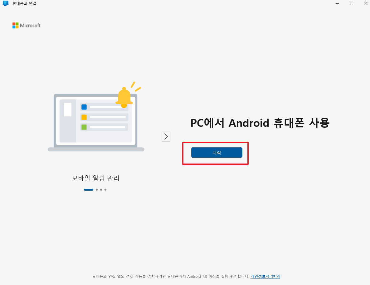 2. pc에서 안드로이드 휴대폰 사용 -> 시작