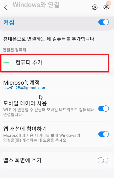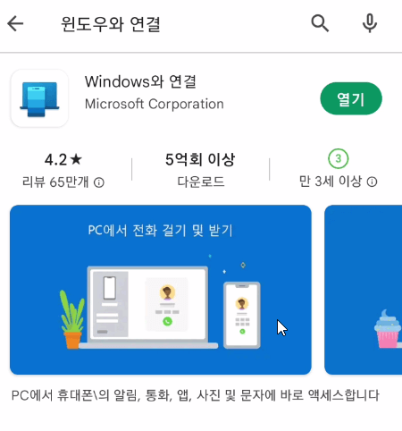 - 플레이 스토어에서 윈도우와 연결 어플을 다운로드 합니다.