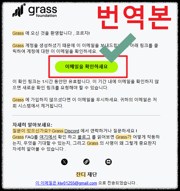 ✔ 1. 가입후 작성한 이메일로 GRASS 에서 메일이 오게 됩니다.