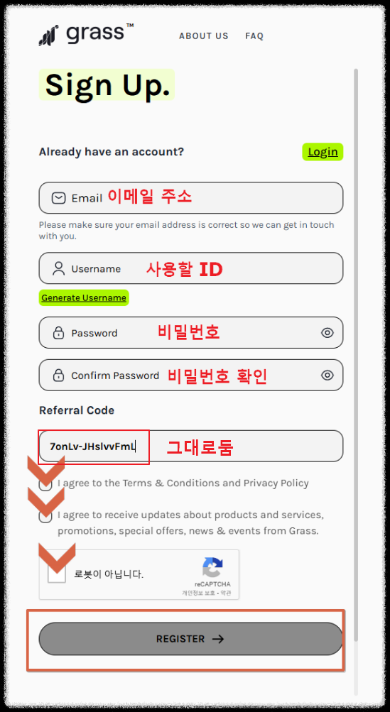 ✅ Referral code는 적혀있는 그대로 둡니다.
