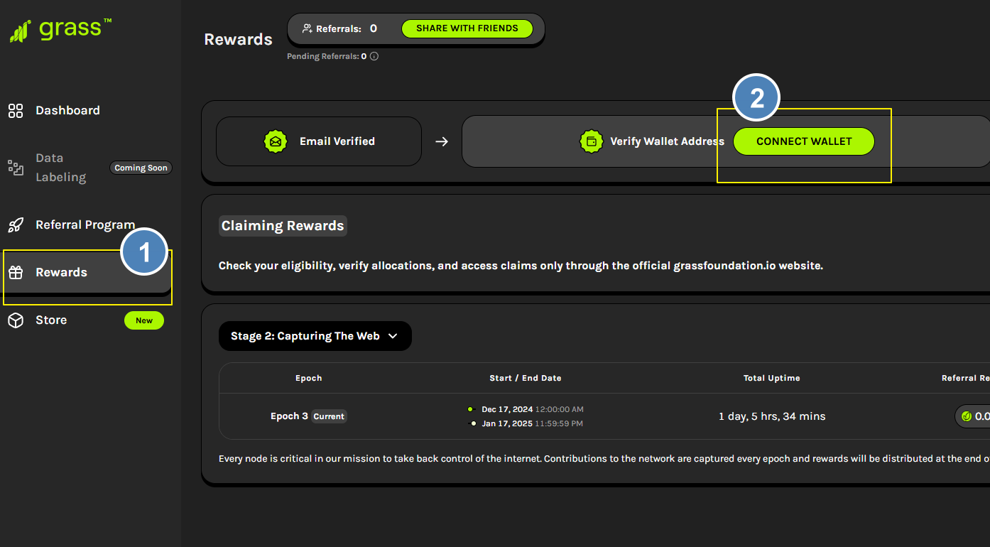 ✅ Rewards -> connect wallet
