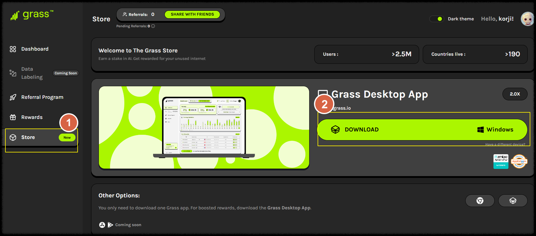 ✅ 홈페이지의 STORE -> GRASS Desktop App 항목으로 이동