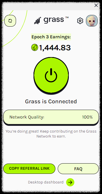이제부터 컴퓨터를 킬때마다 자동으로 GRASS 코인을 채굴하게 됩니다.